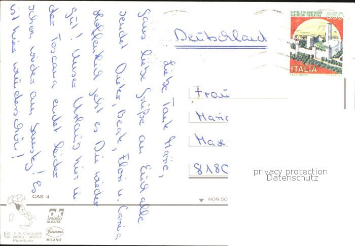 old postcard Castagneto Carducci Stadtansicht postalisch gelaufen Erhaltung siehe scans