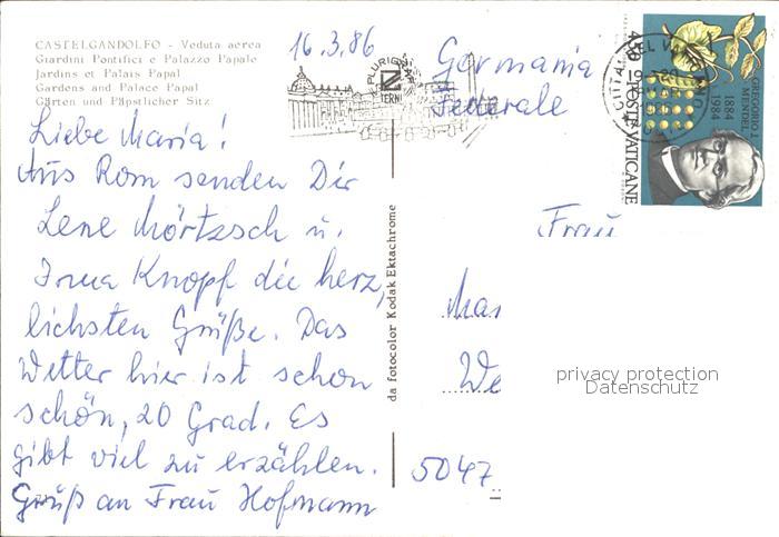 old postcard Castelgandolfo Latium G?rten P?pstlicher Sitz postalisch gelaufen Erhaltung siehe scans