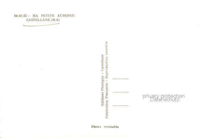 13794287 Castellane 04 Alpes-de-Haute-Provence Ma Petite Auberge postalisch nicht gelaufen Erhaltung siehe scans [LiesaD40] Lies Katcode 11170004204039
