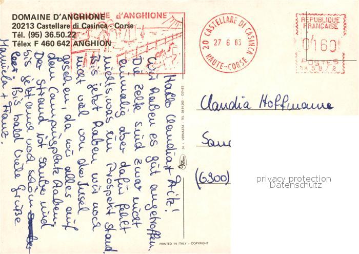 13265634 carte postale Castellare-di-Casinca Domaine d Anghione postalisch gelaufen Erhaltung siehe scans [KathaD81] KatCode: 1117002B22B077