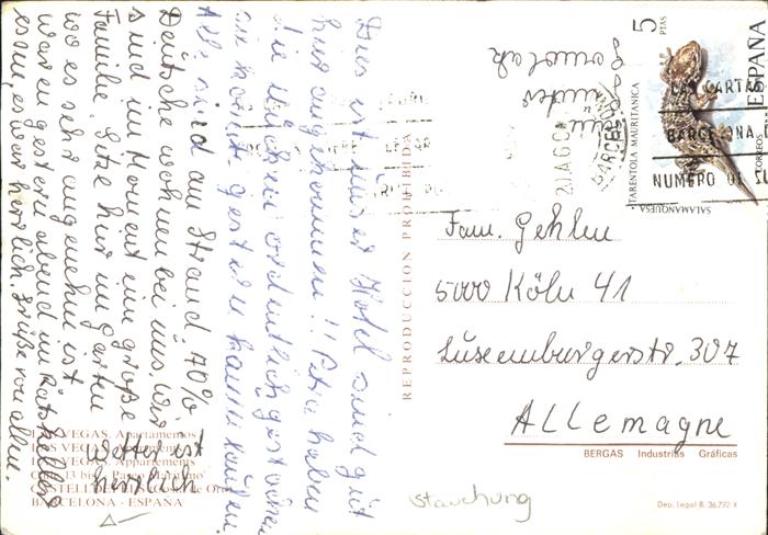 old postcard Castelldefels Apartamentos Las Vegas postalisch gelaufen Erhaltung siehe scans