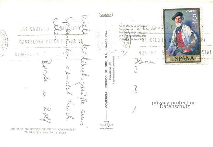 74005792 old postcard Castelldefels BARCELONA Cataluna ES Castillo y vistas de la playa postalisch gelaufen Erhaltung siehe scans [FriedD77] KatCode: 11510