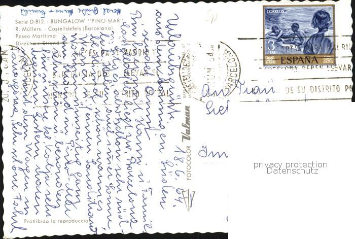 old postcard Castelldefels Bungalow Pino Mar postalisch gelaufen Erhaltung siehe scans