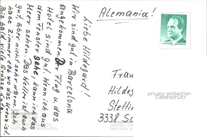 Castelldefels Hotel Mediterraneo postalisch nicht gelaufen Erhaltung siehe scans
