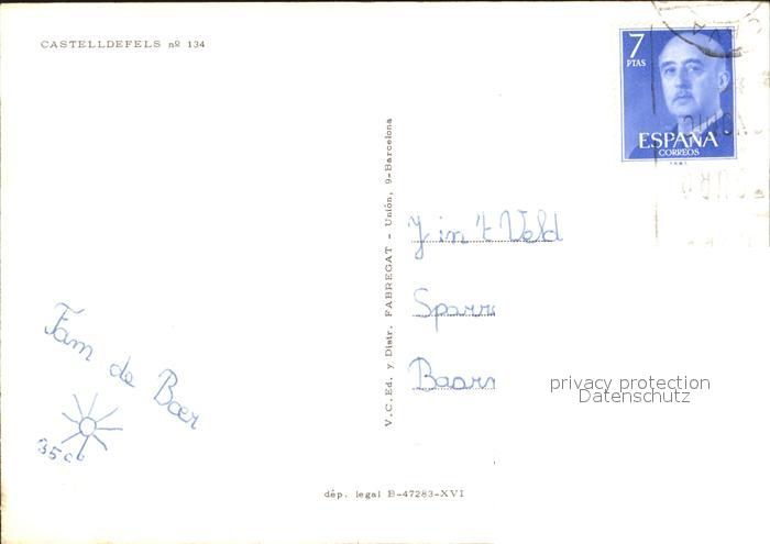 old postcard Castelldefels Strand Burg postalisch gelaufen Erhaltung siehe scans