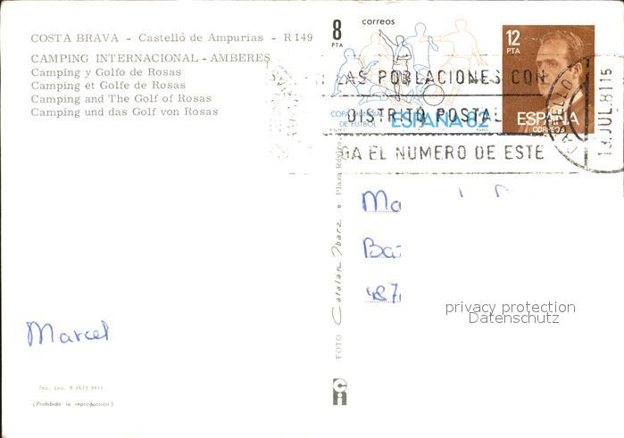 old postcard Castello de Ampurias Camping Internacional postalisch gelaufen Erhaltung siehe scans [AndreD76]