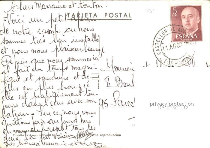 old postcard Castello de Ampurias Camping Laguna Strand Restaurant postalisch gelaufen Erhaltung siehe scans