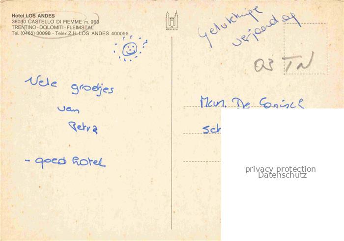 74042975 Castello di Fiemme Trient IT Hotel Los Andes Sauna Bar postalisch nicht gelaufen Erhaltung siehe scans [WerneD78] KatCode: 11240000000000