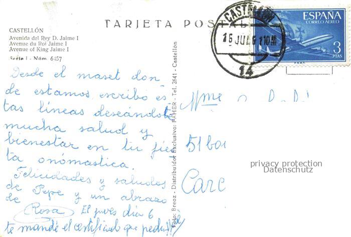 74036931 old postcard Castellon Castello de-la-Plana Valenciana ES Avenida del Rey D Jaime I postalisch gelaufen Erhaltung siehe scans [WerneD78] KatCode: 11510