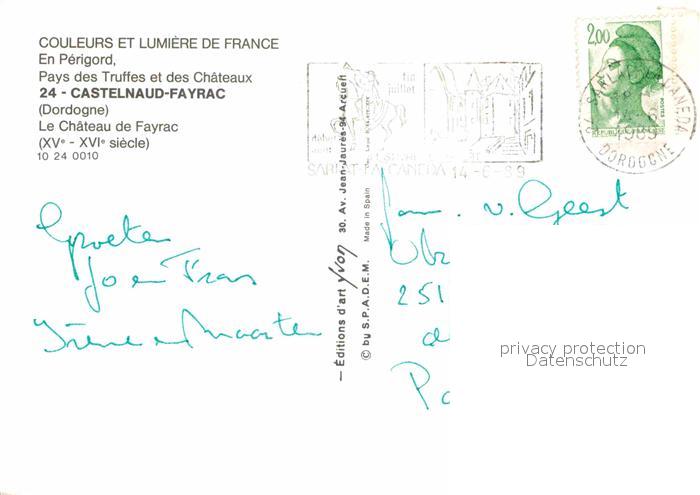 12687955 carte postale Castelnaud-Fayrac Chateau de Fayrac postalisch gelaufen Erhaltung siehe scans [FriedD77] KatCode: 11170024424086