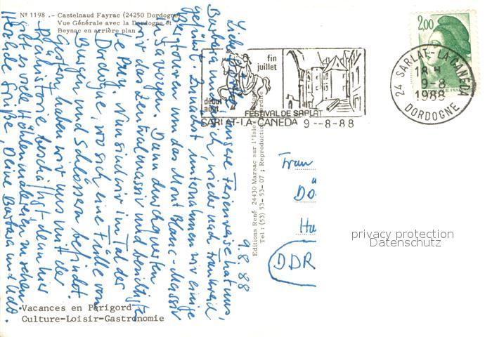 13657456 Castelnaud-Fayrac Vue generale aerienne avec la Dordogne et Beynac en arriere plan postalisch gelaufen Erhaltung siehe scans [WerneD78] carte postale Wern Katcode 11170024424086