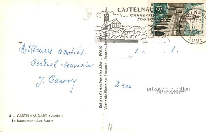 13489992 carte postale Castelnaudary Monument Aux Morts postalisch gelaufen Erhaltung siehe scans [WerneD78] KatCode: 11170011111076