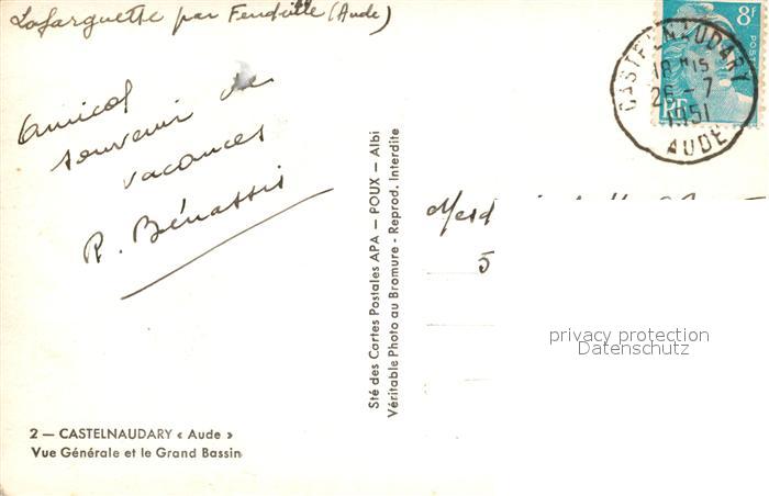 13565372 carte postale Castelnaudary Vue Generale et le Grand Bassin postalisch gelaufen Erhaltung siehe scans [FriedD77] KatCode: 11170011111076