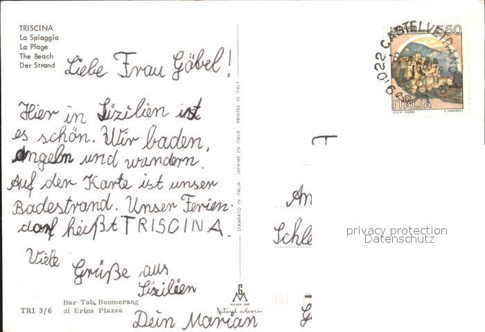 old postcard Castelvetrano La Spiaggia Triscina postalisch gelaufen Erhaltung siehe scans
