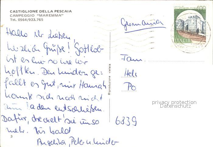 old postcard Castiglione della Pescaia Campeggo Maremma Segelboot postalisch gelaufen Erhaltung siehe scans