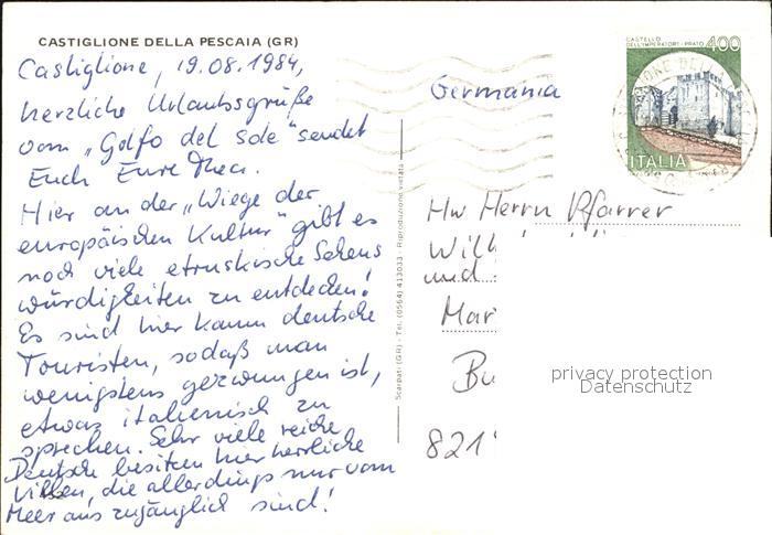 old postcard Castiglione della Pescaia Gesamtansicht postalisch gelaufen Erhaltung siehe scans