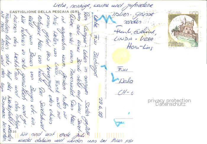 old postcard Castiglione della Pescaia Panorama Sonnenuntergang Strand Burg postalisch gelaufen Erhaltung siehe scans