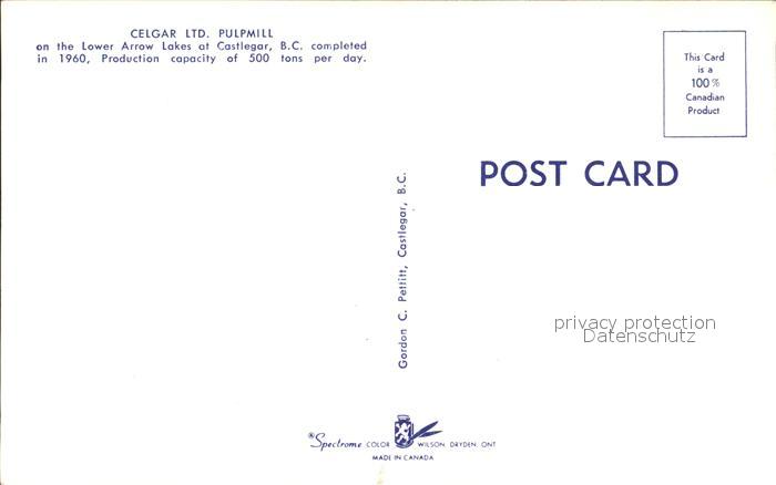 Castlegar Celgar Pulmill postalisch nicht gelaufen Erhaltung siehe scans