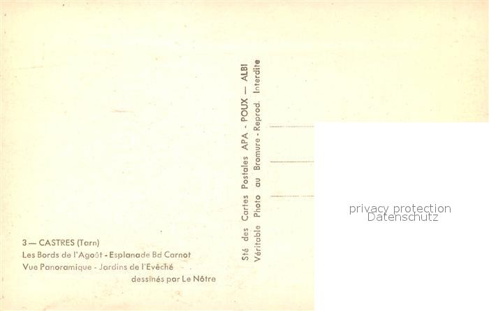 13565396 Castres Tarn Bords de l’Agoût Esplanade Boulevard Carnot Jardin de l’Evêché vue panoramique postalisch nicht gelaufen Erhaltung siehe scans [FriedD77] KatCode: 11170081281065