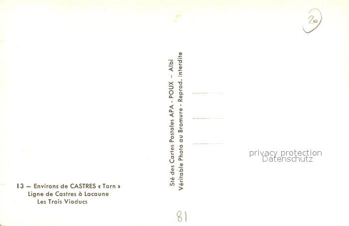 13485543 Castres Tarn Ligne de Castres a Lacaune Les Trois Viaducs postalisch nicht gelaufen Erhaltung siehe scans [FriedD77] KatCode: 11170081281065