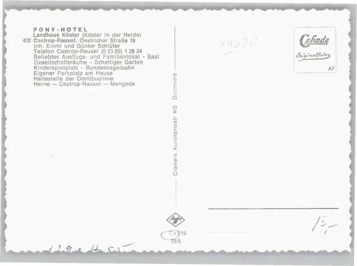 40688252 Castrop-Rauxel Pony Hotel Landhaus Köster KatCode 11110005562004