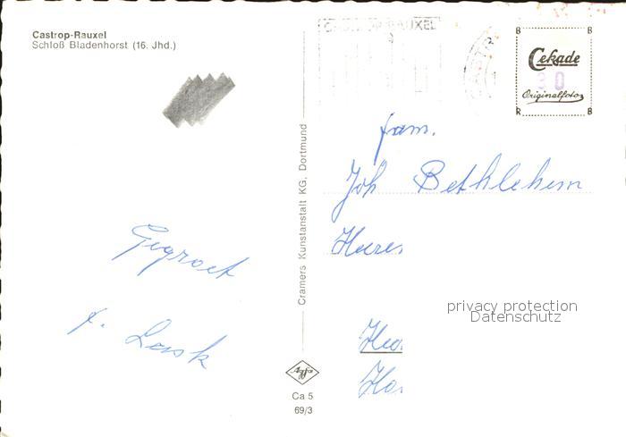 72465398 alte Postkarte Castrop-Rauxel Schloss Bladenhorst postalisch gelaufen Erhaltung siehe scans KatCode: 11110005562004