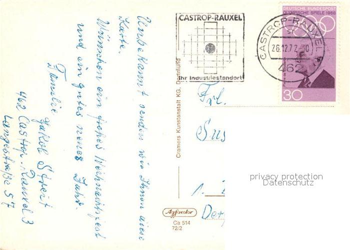 73127480 alte Postkarte Castrop-Rauxel Schloss Bladenhorst Anlagen Fontaene Kirche Strassenpartie Stadtgarten Hallenbad postalisch gelaufen Erhaltung siehe scans [FriedD77] KatCode: 11110005562004