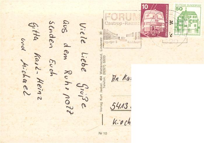 73900667 alte Postkarte Castrop-Rauxel Stadtgarten Hallenbad Bahnhof Rauxel Stadtgartenmotiv postalisch gelaufen Erhaltung siehe scans [WerneD78] KatCode: 11110005562004
