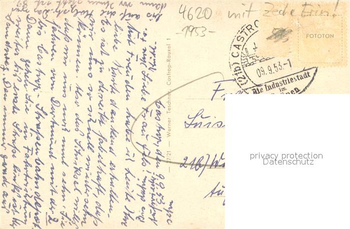 73754305 alte Postkarte Castrop-Rauxel Zeche-Erin Muensterstrasse Zeppelinstrasse m. Rathaus postalisch gelaufen Erhaltung siehe scans [LiesaD40] KatCode: 11110005562004