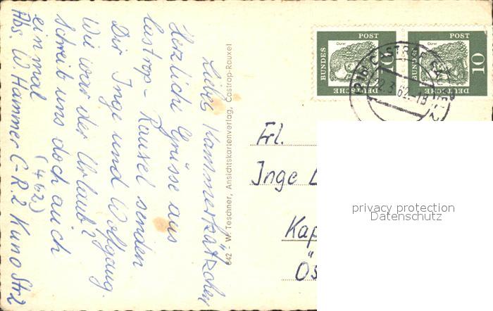 31841210 alte Postkarte Castrop-Rauxel Zeppelinstrasse Parkbad Rathaus Markt Reiterdenkmal postalisch gelaufen Erhaltung siehe scans KatCode: 11110005562004