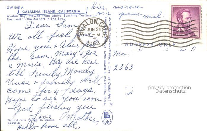 11693870 old postcard Catalina Island Avalon Bay Habor Steamer postalisch gelaufen Erhaltung siehe scans KatCode: 14140