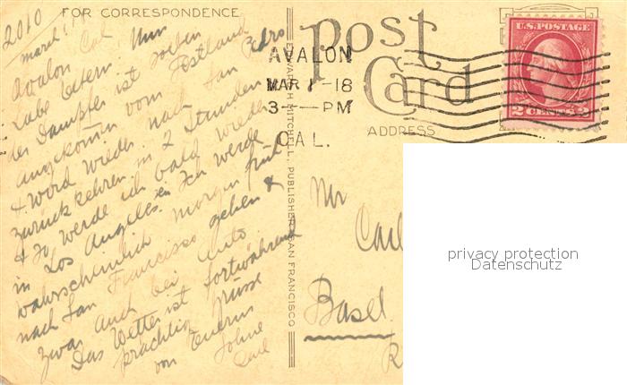 13320602 old postcard Catalina Island Hotel Metropole Beach Avalon postalisch gelaufen Erhaltung siehe scans [Darjalle] KatCode: 14140
