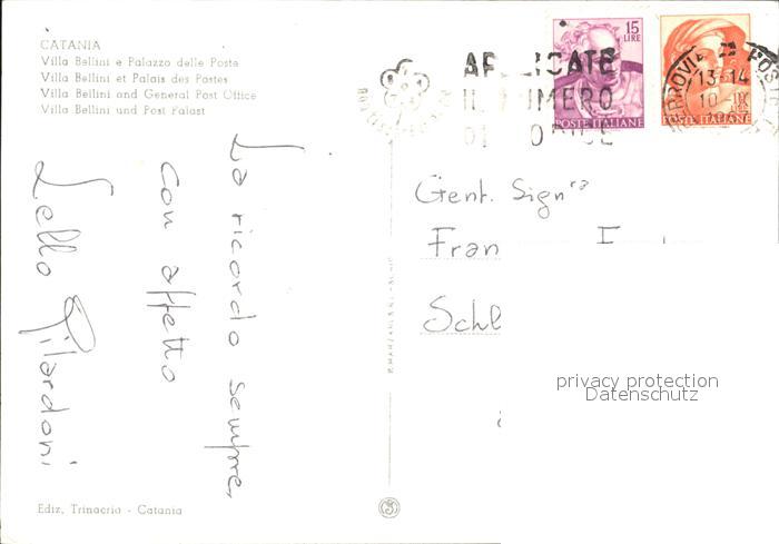 old postcard Catania Villa Bellini Palazzo delle Poste postalisch gelaufen Erhaltung siehe scans