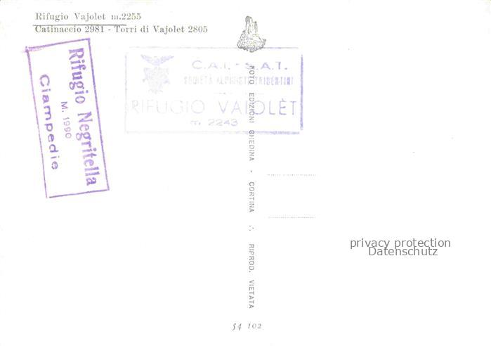74136675 Catinaccio 1580 Rosengartengruppe Dolomiti IT Torri di Vajolet Rifugio Vajolet postalisch nicht gelaufen Erhaltung siehe scans [WerneD78] KatCode: 11240