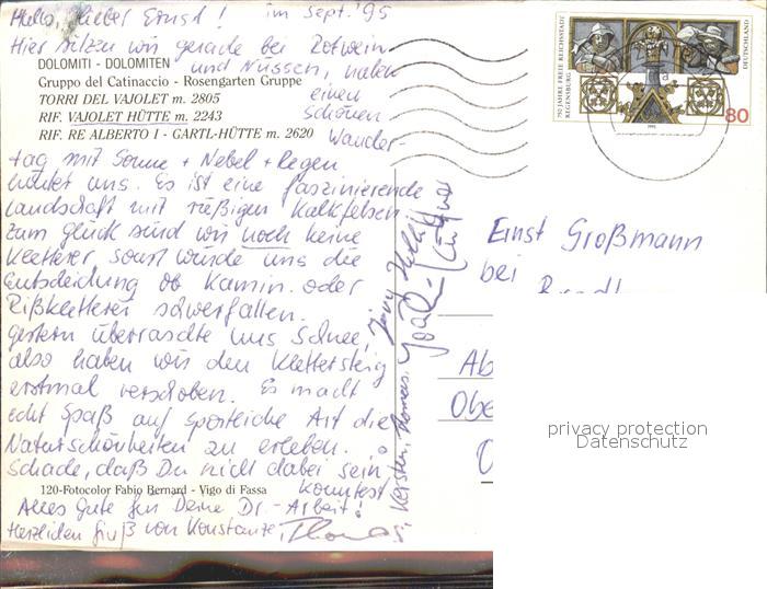 old postcard Catinaccio Dolomiten Vajolet Huette postalisch gelaufen Erhaltung siehe scans