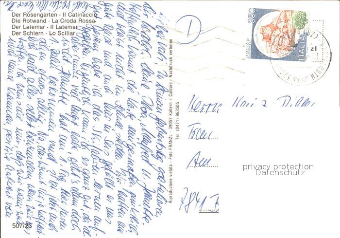 old postcard Catinaccio Rosengarten Rotwand Latemar Schlern postalisch gelaufen Erhaltung siehe scans