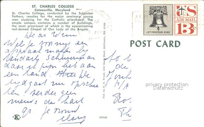 72449764 old postcard Catonsville Fliegeraufnahme St. Charles College postalisch gelaufen Erhaltung siehe scans KatCode: 14140220000000