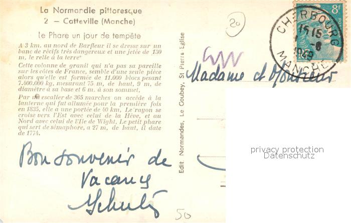 13506785 carte postale Catteville Le Phare un jour de tempête postalisch gelaufen Erhaltung siehe scans [FriedD77] KatCode: 11170050250105