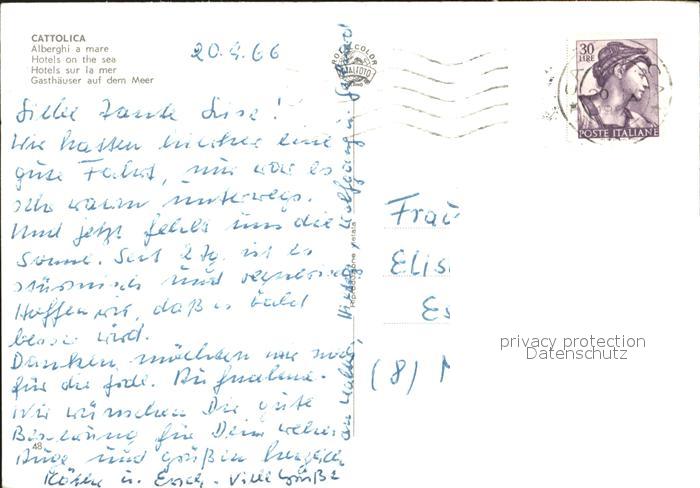 old postcard Cattolica Rimini Alberghi a mare Hotels am Strand Fliegeraufnahme postalisch gelaufen Erhaltung siehe scans