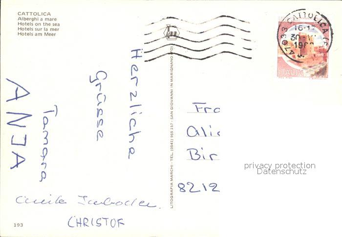 old postcard Cattolica Rimini Alberghi a mare Strand postalisch gelaufen Erhaltung siehe scans