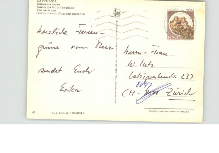 old postcard Cattolica Rimini Cattolica Fliegeraufnahme postalisch gelaufen