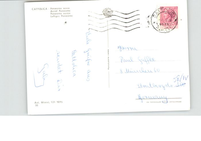 old postcard Cattolica Rimini Cattolica Fliegeraufnahme postalisch gelaufen