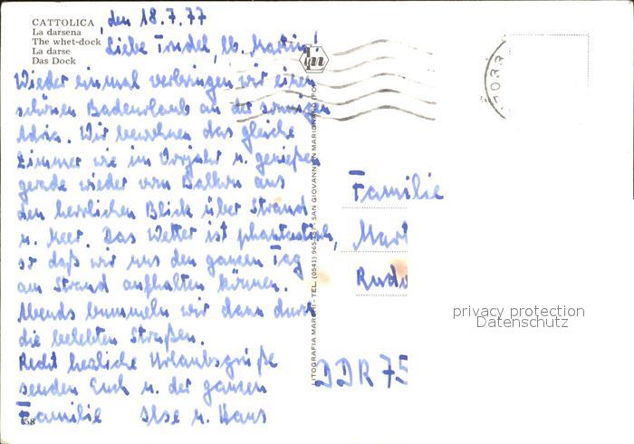 old postcard Cattolica Rimini Das Dock postalisch gelaufen Erhaltung siehe scans