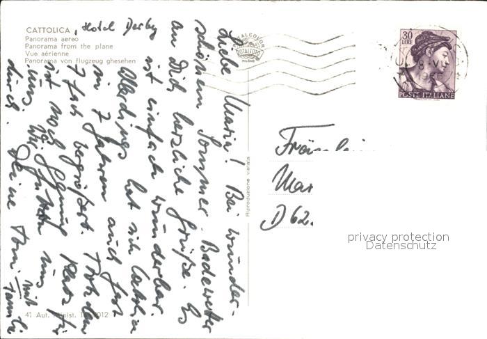 old postcard Cattolica Rimini Fliegeraufnahme mit Strand postalisch gelaufen Erhaltung siehe scans