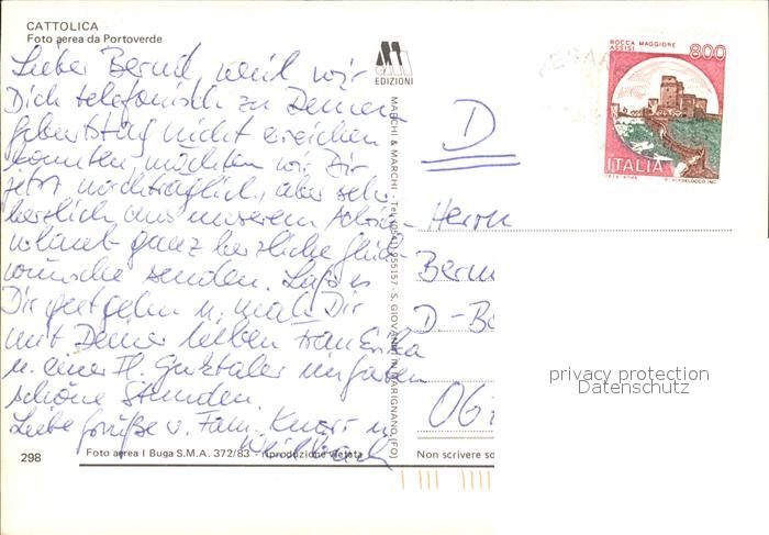 old postcard Cattolica Rimini Fliegeraufnahme Portoverde postalisch gelaufen Erhaltung siehe scans
