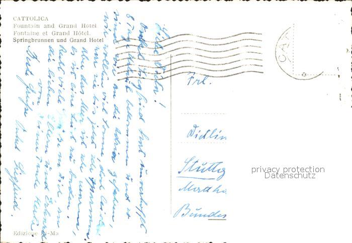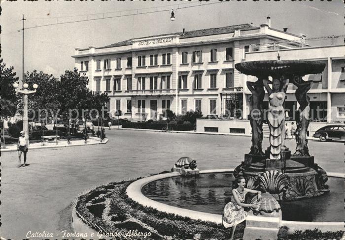 old postcard Cattolica Rimini Fontana Grande Albergo postalisch gelaufen