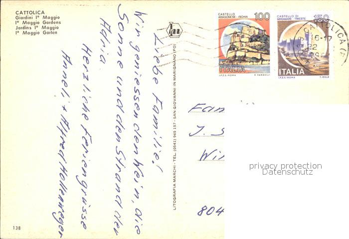 old postcard Cattolica Rimini Giardini Maggio postalisch gelaufen Erhaltung siehe scans