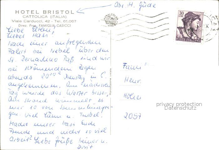 old postcard Cattolica Rimini Hotel Bristol Segelboot postalisch gelaufen