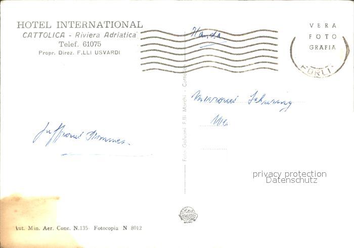 old postcard Cattolica Rimini Hotel International Fliegeraufnahme postalisch gelaufen Erhaltung siehe scans