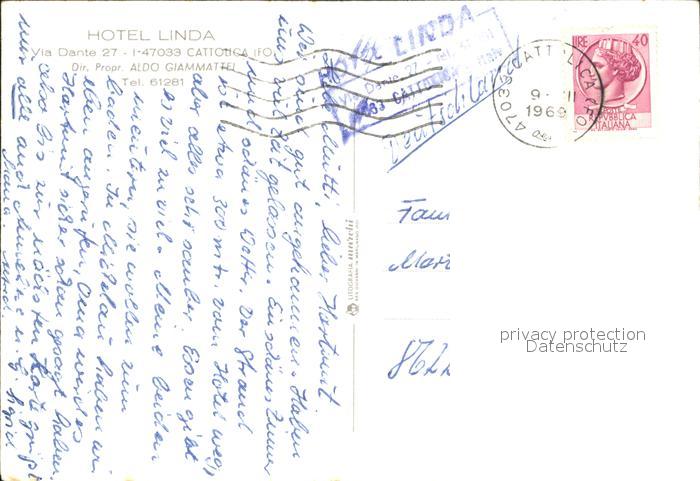 old postcard Cattolica Rimini Hotel Linda postalisch gelaufen Erhaltung siehe scans